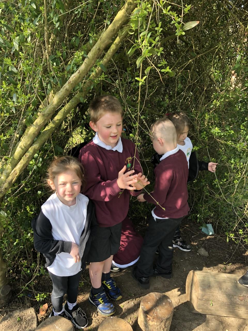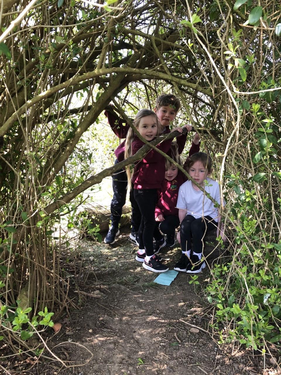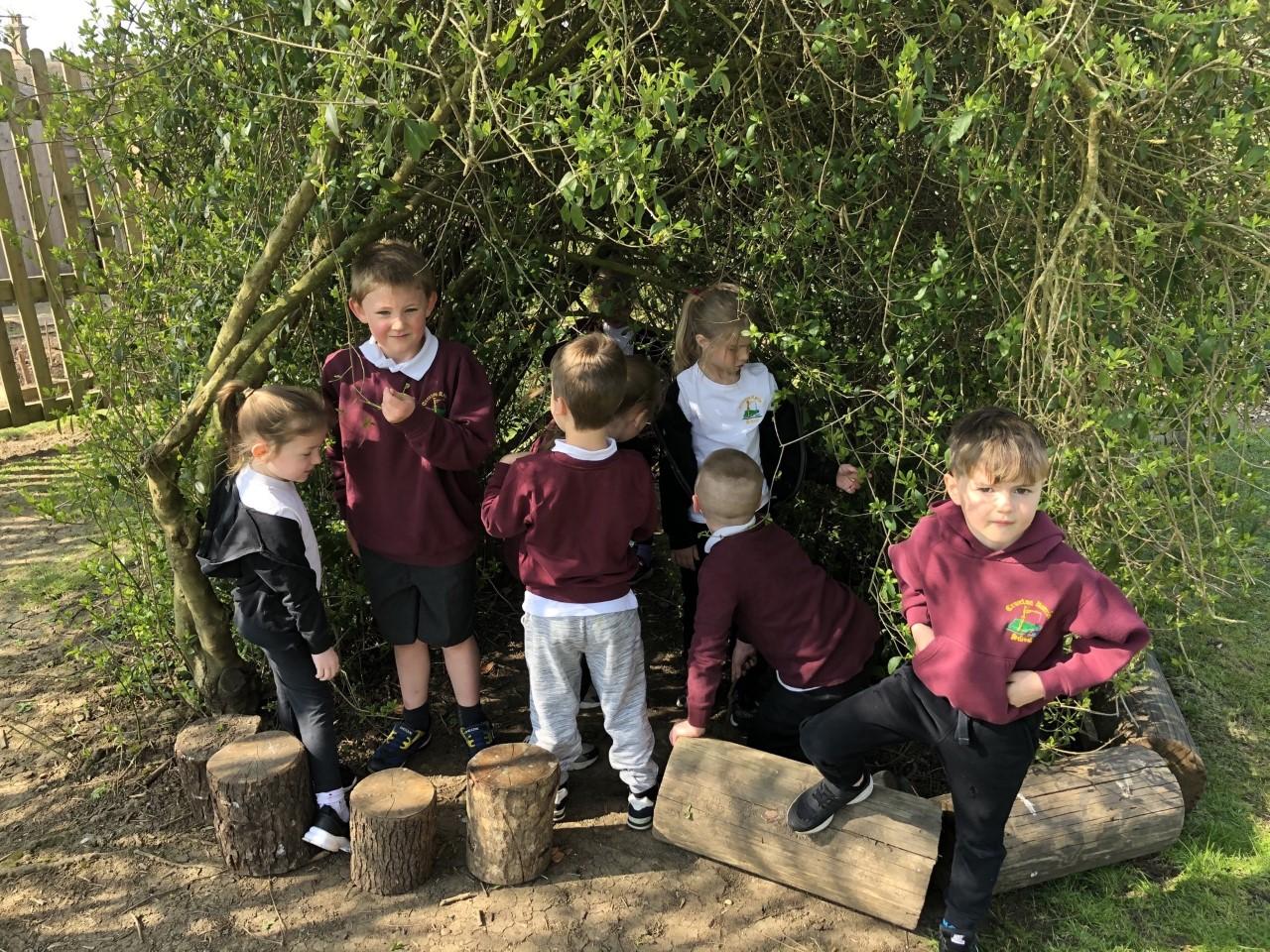 Our school grounds provide lots of opportunities for enriching the curriculum. Our children love to explore the natural world through gardening, building shelters and different habitats; through steering their bikes, scooters, prams and wheelbarrows along a range of trails; digging and planting; running and climbing; team building and socialising; resting and relaxing.